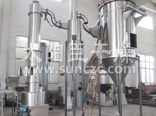 本機組工作過程為料液通過隔膜泵高壓輸入,噴出霧狀液滴,然后同熱空氣并流下降,大部分粉粒…